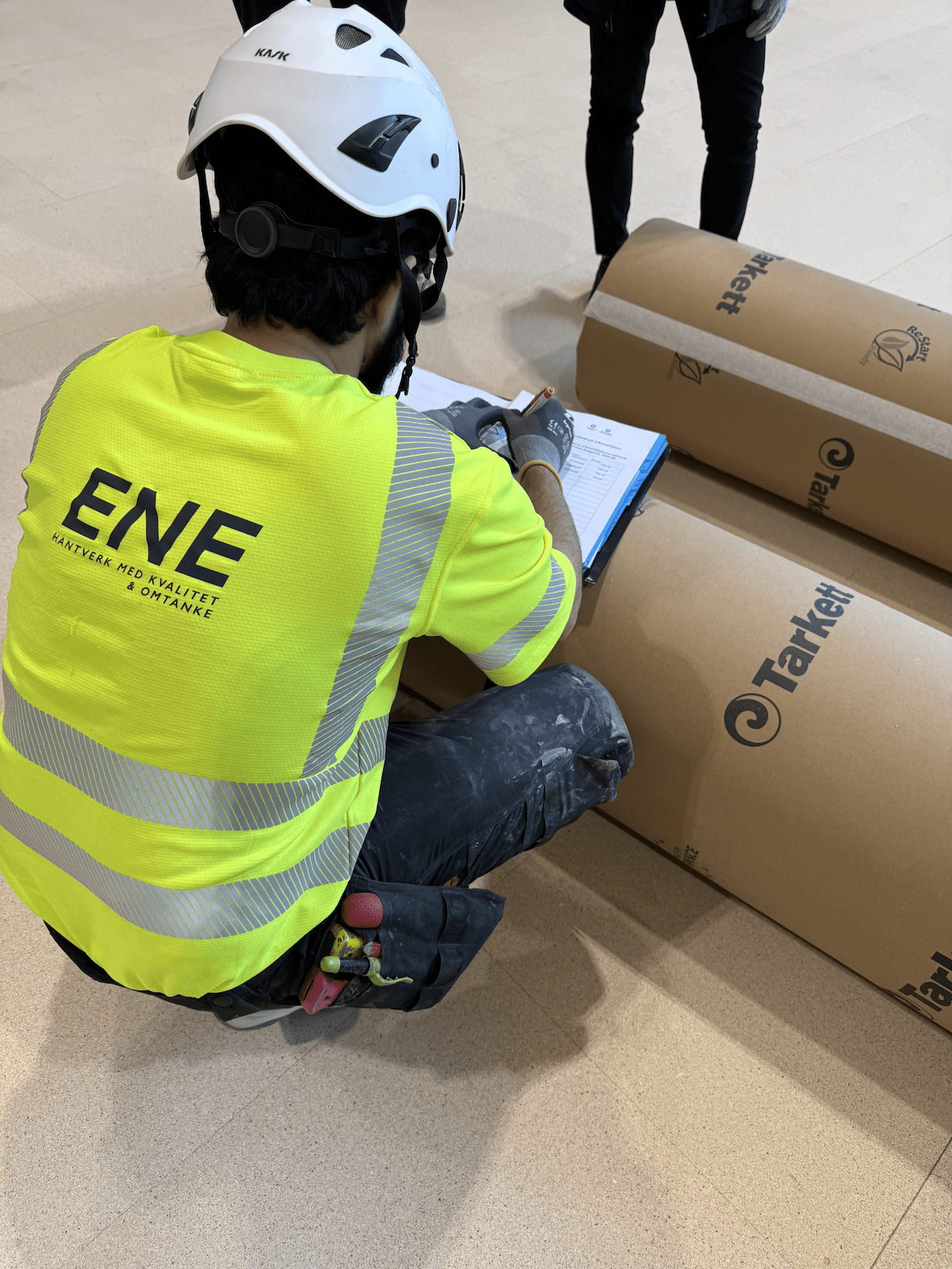 Ända sedan vi grundade ENE AB 1994 så har vi bemästrat alla typer av golvarbeten. Vår gedigna erfarenhet gör att vi utför inläggning av alla golvtyper som t.ex linoleum, parkett, plast och keramik, men även specialarbeten som infällda logotyper, mönsterläggningar osv.